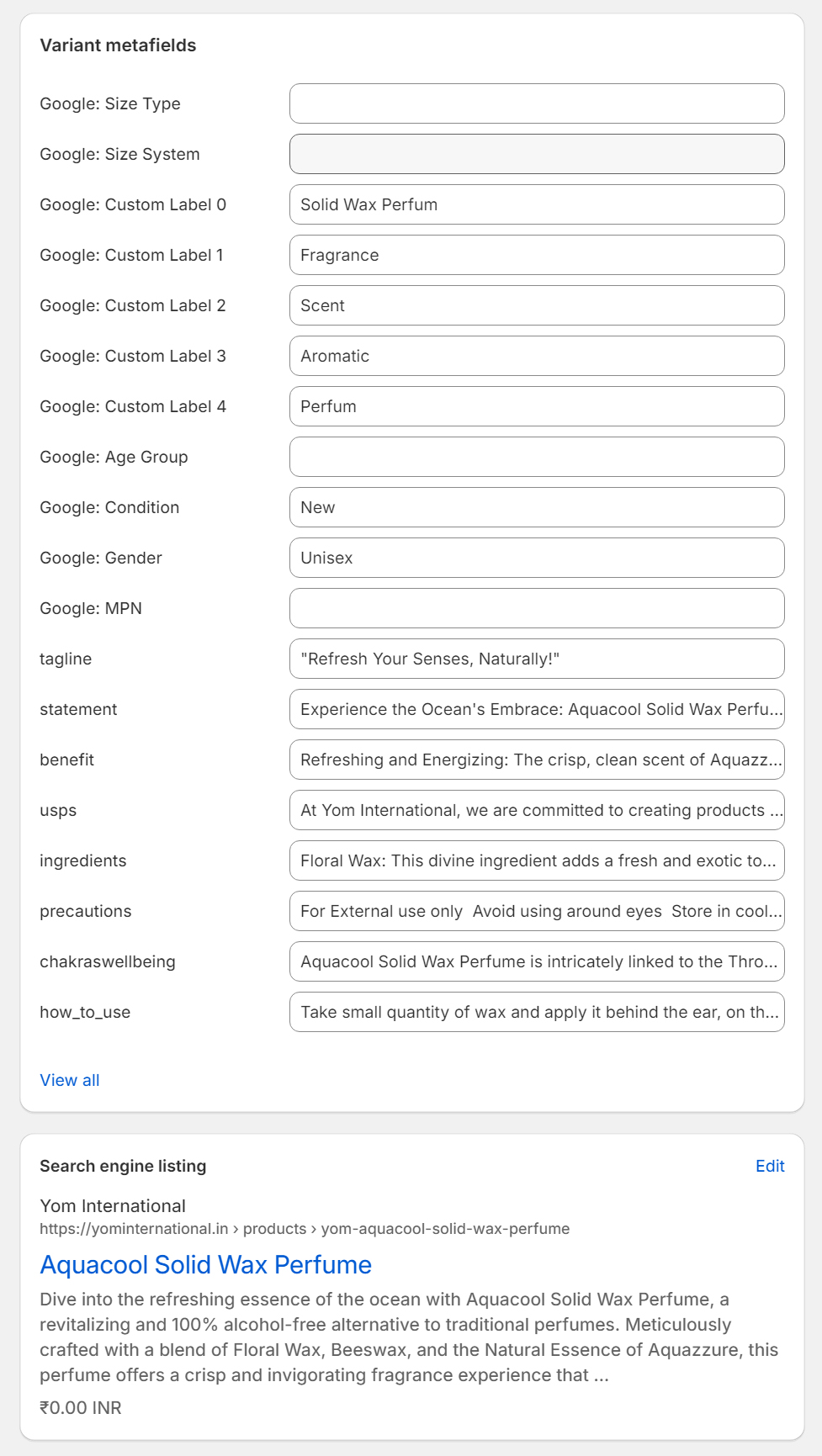 - Updated all the Solid Wax Perfume Products with all the Metafields and information as per our requirement